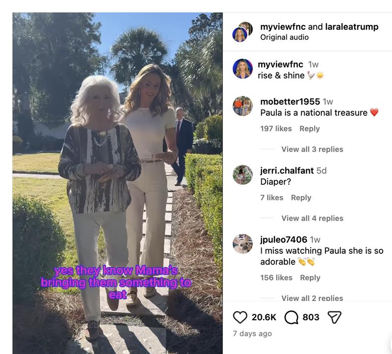 The clip, taken from her talk show, “My View with Lara Trump,” opens inside a chef’s kitchen as Lara, the wife of the president’s son Eric Trump, turns to her guest and casually asks, “Where are we going, Paula?” in footage dated Nov. 18 — a seemingly light moment that quickly set the tone for what viewers saw next.