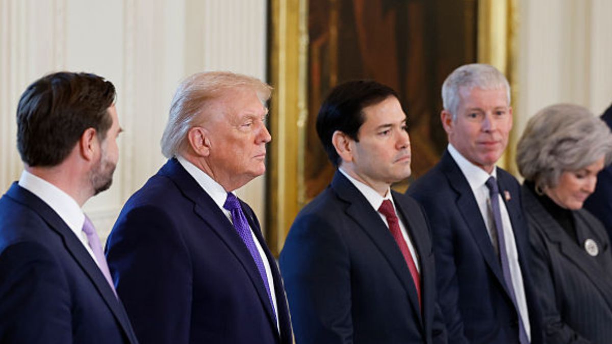 Vice President JD Vance stood to his right, and Secretary of State Marco Rubio stood to his left. Chief of staff Susie Wiles and Trump’s son-in-law and adviser Jared Kushner were also standing close by.